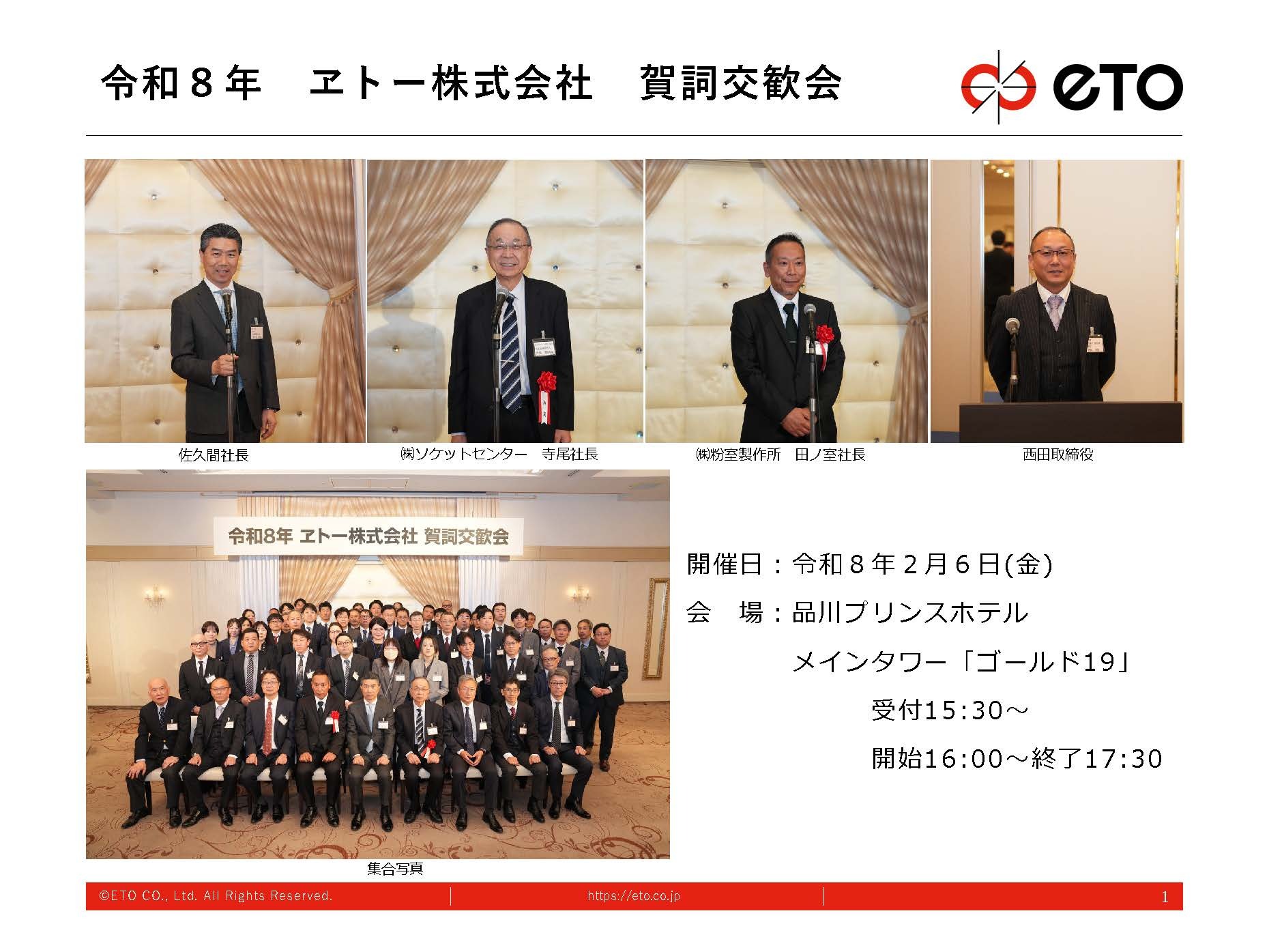 当社は、2月6日に 品川プリンスホテル メインタワー「ゴールド19」 において、「令和8年 ヱトー株式会社 賀詞交歓会」を開催いたしました。